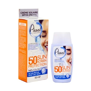 کرم ضدآفتاب بی رنگ پیکسل مناسب پوست چرب و مستعد آکنه، از پوست در برابر هر دو اشعه UVA و UVB به خوبی محافظت میکند و علاوه بر این، این محصول دارای فاکتور حفاظتی +SPF50 در برابر اشعه UVB و +++ PA در برابر اشعه UVA است.