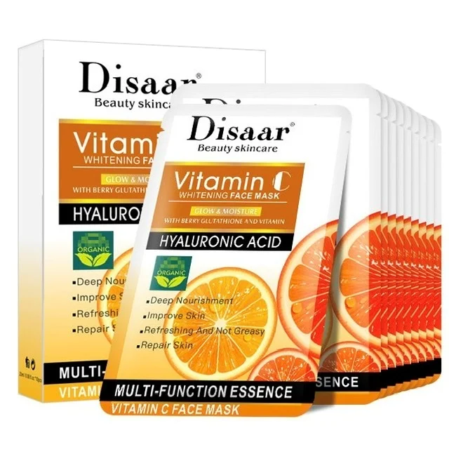 ماسک ورقه ای دیسار Disaar مدل ویتامین C دارای مواد مغذی فوق العاده ای مفیدی است که سبب مرطوب و روشن شدن پوست شما خواهد شد. ماسک ورقه ای دیسار سرشار از ویتامین C است و درخشندگی و پوستی سالم را به شما هدیه خواهد داد. این محصول خاصیت آنتی اکسیدانی دارد و کلید طلایی برای داشتن پوست سالم محسوب می شود زیرا در تقویت بافت پوست و افزایش سلامتی آن بسیار موثر است.