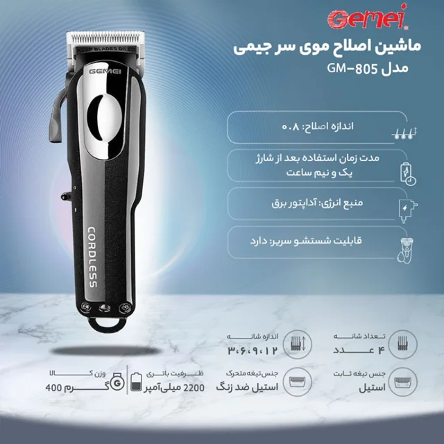 ماشین اصلاح جیمی مدل GM-805 یکی از ابزارهای حرفهای و باکیفیت برای اصلاح مو است که به دلیل طراحی ارگونومیک و عملکرد قوی، هم برای استفاده خانگی و هم آرایشگاهی مناسب است. این دستگاه با تیغههای استیل ضدزنگ و موتور قدرتمند، اصلاحی دقیق و بینقص را فراهم میکند.