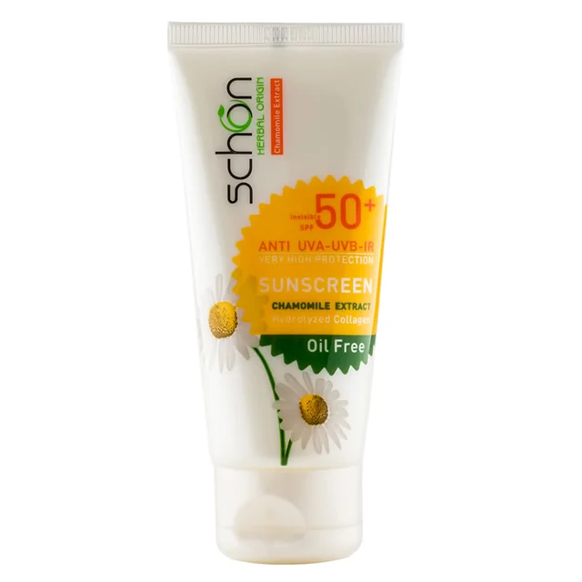 کرم ضد آفتاب فاقد رنگ و چربی شون +SPF50 مناسب پوست چرب با حجم 50 میلی لیتر ، یک ضدآفتاب گیاهی دارای عصاره بابونه و فاکتور محافظتی spf50+ است که به منظور محافظت از پوست چرب در برابر پرتو های آسیب زا نور خورشید مانند؛ UVA، UVB و IR و رادیکال های آزاد موجود در محیط، در سه مدل بی رنگ، طبیعی و بژ تیره در بسته بندی تیوپ به حجم 50 میلی لیتر به عنوان یک محصول آلمانی-ایرانی تولید و عرضه می شود.