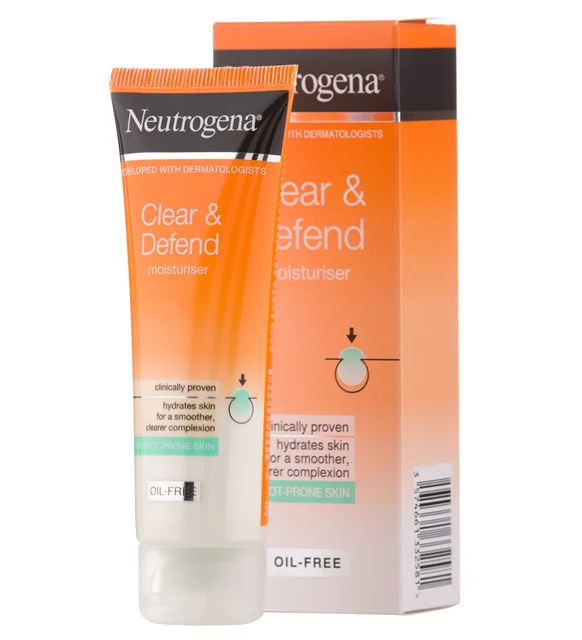 کرم مرطوب کننده ضد جوش فاقد چربی نوتروژینا مدل Clear & Defend با حجم 50 میلی لیتر و محصول آمریکا، یک کرم چند منظوره برای پوست های چرب است. این کرم پوست را تا 24 ساعت آبرسانی کرده و با حفظ رطوبت پوست از خشک شدن آن جلوگیری میکند. کرم مرطوب کننده ضد جوش Neutrogena فاقد چربی بوده و از مسدود شدن منافذ و ایجاد جوش و آکنه جلوگیری می نماید. این کرم همچنین در برطرف کردن لک ها و جوش ها و التهاب های پوستی موثر است.