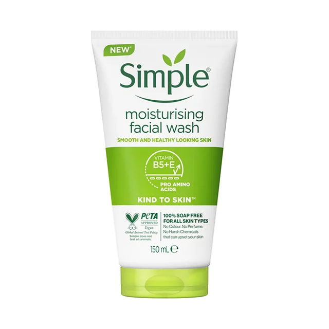 ژل شست و شوی صورت سیمپل یکی شویندههای ملایم اما موثر متناسب با پوست حساس است ک به آن آسیبی نمیرساند و به آن شادابی و طراوت هدیه میکند. این ژل از برند سیمپل است و مناسب استفاده پوستهای حساس است. علاوه بر تمامی موارد ذکر شده، ژل شست و شوی صورت سیمپل تست حیوانی ندارد و کاملا وگان است. این ژل همچنین فاقد هرگونه رنگ و اسانس مصنوعی است و هیچ آسیبی به پوست نخواهد رساند.ژل شست و شوی صورت سیمپل غنی شده با ویتامین B5، ویتامین E و بیسابول است. ویتامین E موجود در این کرم سبب میشود تا این ژل خاصیت سفت کنندگی و لیفت صورت را نیز داشته باشد و از افتادگی پوست شما جلوگیری کند. بیزابول نیز از ترکیبات موجود در بابونه است و مهم ترین ویژگی آن ضد التهاب بودن آن است .این ژل شست و شوی صورت مناسب همه افراد با پوستهای خشک و حساس است.