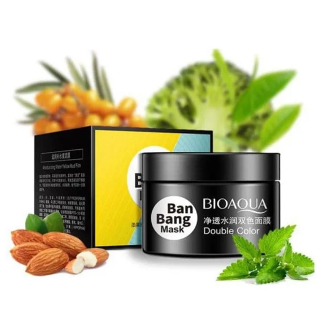 ماسک پاکسازی و مغذی پوست صورت دو رنگ بن بنگ بیوآکو، با طراحی خاص و حرفه ای، برای پاکسازی، تغذیه و مرطوب سازی پوست صورت و با توجه به نیاز هر ناحیه از پوست تولید شده است. ماسک صورت دو رنگ بیوآکو شامل دو بخش با مواد طبیعی و تغذیه کننده متفاوت میباشد که هر کدام برای ناحیه مخصوصی از صورت کاربرد دارند؛ بخش گیاهی که حاوی عصاره چای، گل کلم، نعنا و برگ گیاه ملیسا است و بخش دیگر که حاوی عصاره میوه های پاپایا، آووکادو، بادام و سنجد تلخ میباشد که هر کدام از این مواد پوست را تغذیه کرده و سلامت آن را تامین میکنند. بخش گیاهی و سبز رنگ این محصول برای ناحیه Tشکل صورت (پیشانی و بینی) طراحی شده است. با توجه به اینکه پوست ناحیه پیشانی و بینی معمولا از سایر نواحی چرب تر است و بیشتر در معرض جوش و آکنه قرار دارد، بخش گیاهی این ماسک با بکارگیری خواص طبیعی گیاهان، چربی پوست را کنترل میکند و با پاکسازی عمیق منافذ پوست، از جوش و آکنه نیز جلوگیری میکند. بخش دیگر این محصول که زرد رنگ و حاوی میوه های مغذی است، برای ناحیهU شکل صورت (گونه و چانه) طراحی شده است. از آنجا که پوست این ناحیه معمولا خشک بوده و با کمبود رطوبت مواجه است، ترکیبات این ماسک میتوانند پوست این ناحیه را عمیقا تغذیه و آبرسانی کنند و نرمی و شادابی پوست را افزایش دهند. این محصول پوست شما را از هرگونه چربی و آلودگی پاکسازی میکند، چربی پوست را کنترل میکند و به پوست لطافت و نرمی میبخشد. خاصیت آبرسانی این ماسک باعث میشود پوست شما همواره هیدراته بماند و به این دلیل از ایجاد چروک جلوگیری میشود. همچنین با پاکسازی عمیق و بستن منافذ پوست، از جوش، آکنه و جوش های سرسیاه جلوگیری میکند. طراحی خاص این محصول باعث شده تا با توجه به شرایط پوست در نواحی مختلف، نیازهای پوست را برطرف کند و با تغذیه و آبرسانی، سلامت پوست را بهبود بخشد. بافت این محصول سبک است و استفاده از آن، شادابی، طراوت و زیبایی را برای پوست شما به ارمغان می آورد.