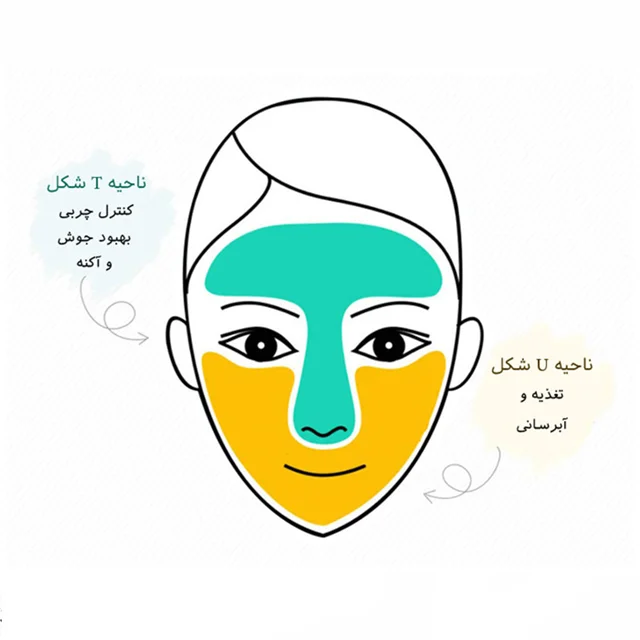 پوستتان را بشویید و تمیز کنید قسمت سبز رنگ را روی ناحیه T شکل و قسمت زرد رنگ را روی ناحیه U شکل صورت بطور یکدست پخش کنید ۱۵ الی ۲۰ دقیقه صبر کنید و سپس پوستتان را با آب بشویید